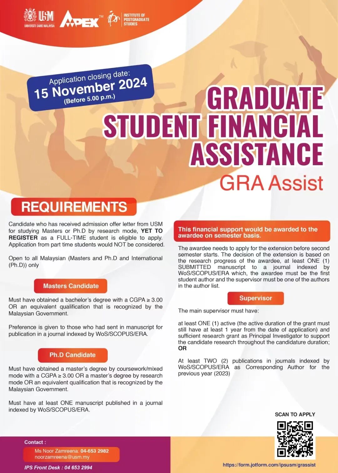 1. 申请人必须已收到USM研究型博士课程的录取通知书,并且是尚未注册的全日制学生。