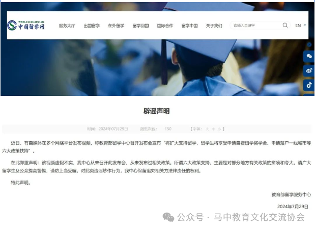 中留服官方辟谣声明